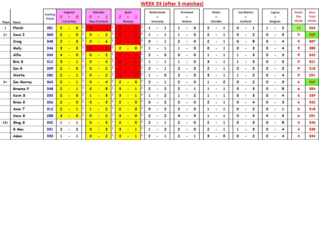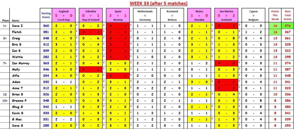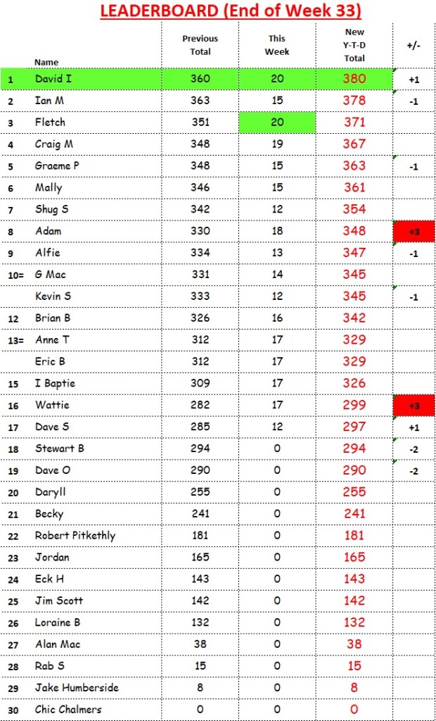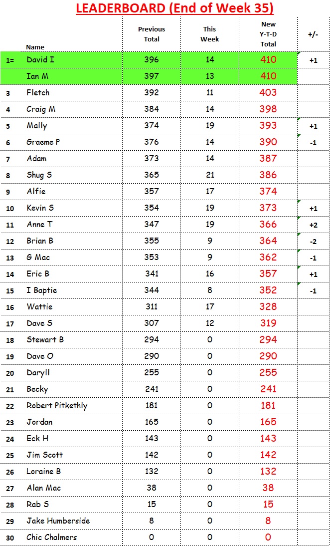David “The Fermer” Imlay caught (but didn’t overtake) Ian Murray and both now sit on 410 points.