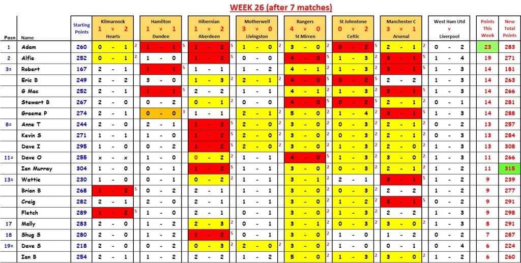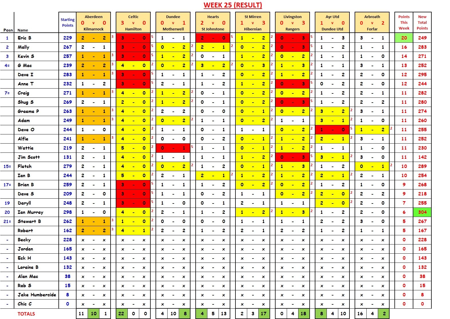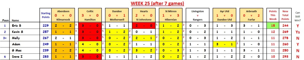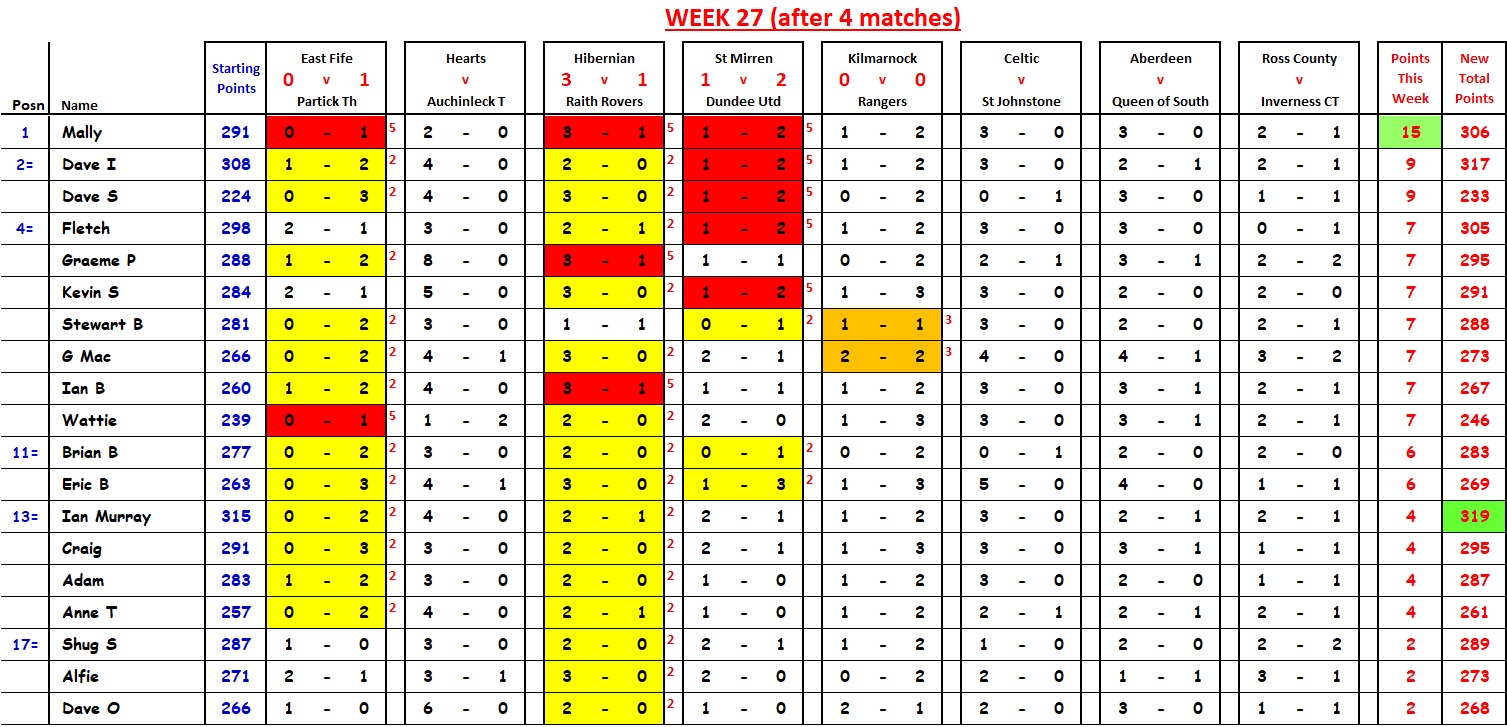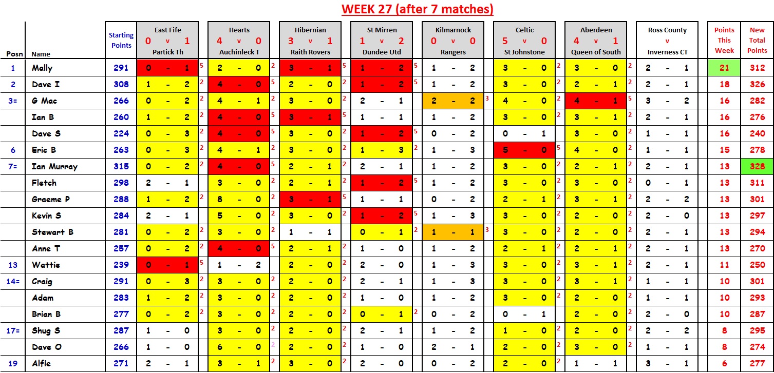 Mally wins with 21 points; David I cuts Ian Murray’s lead down to 2 points