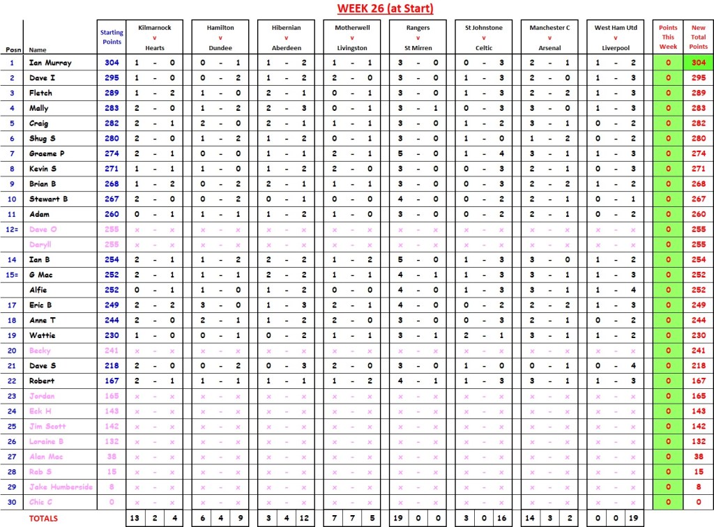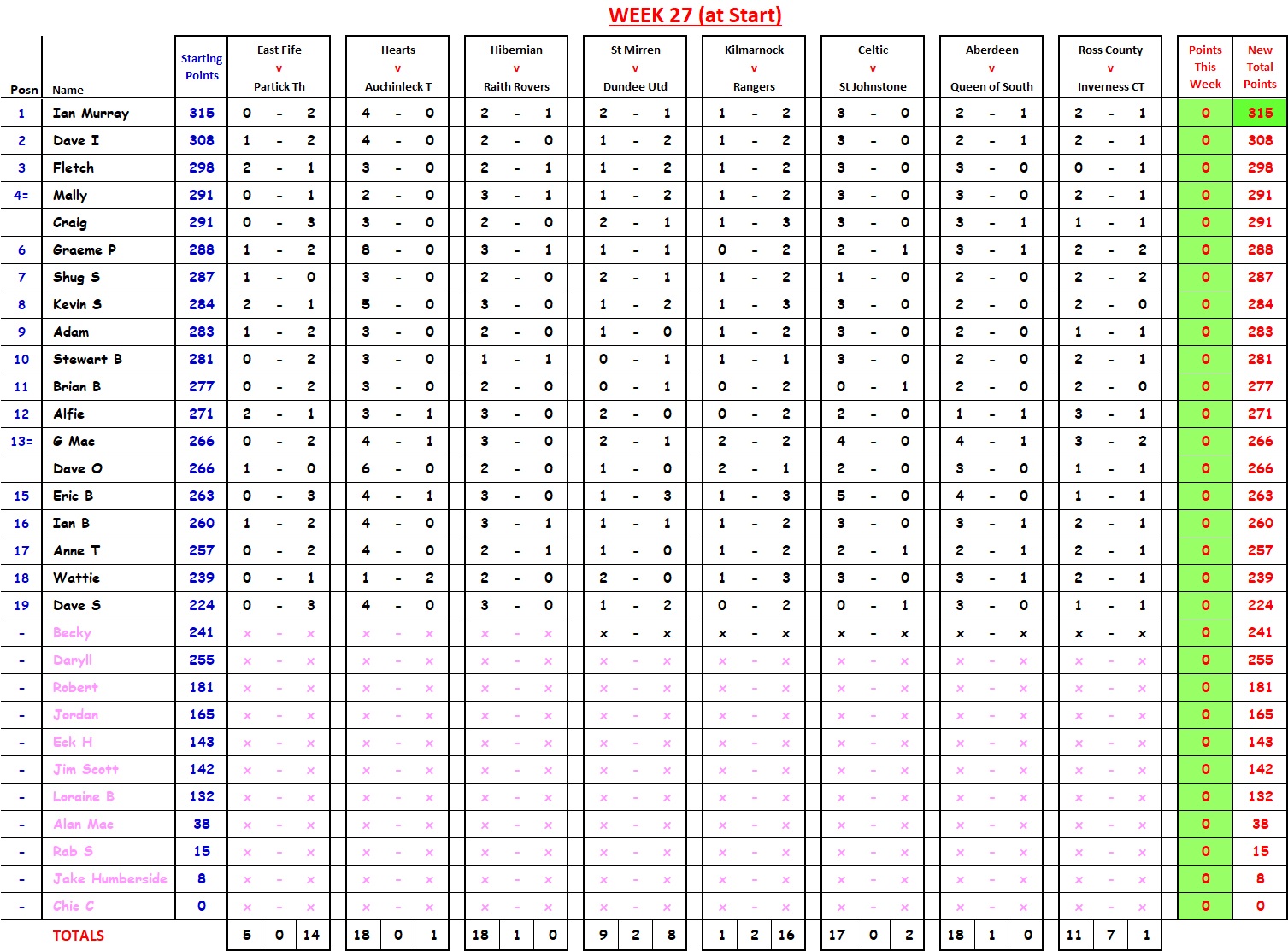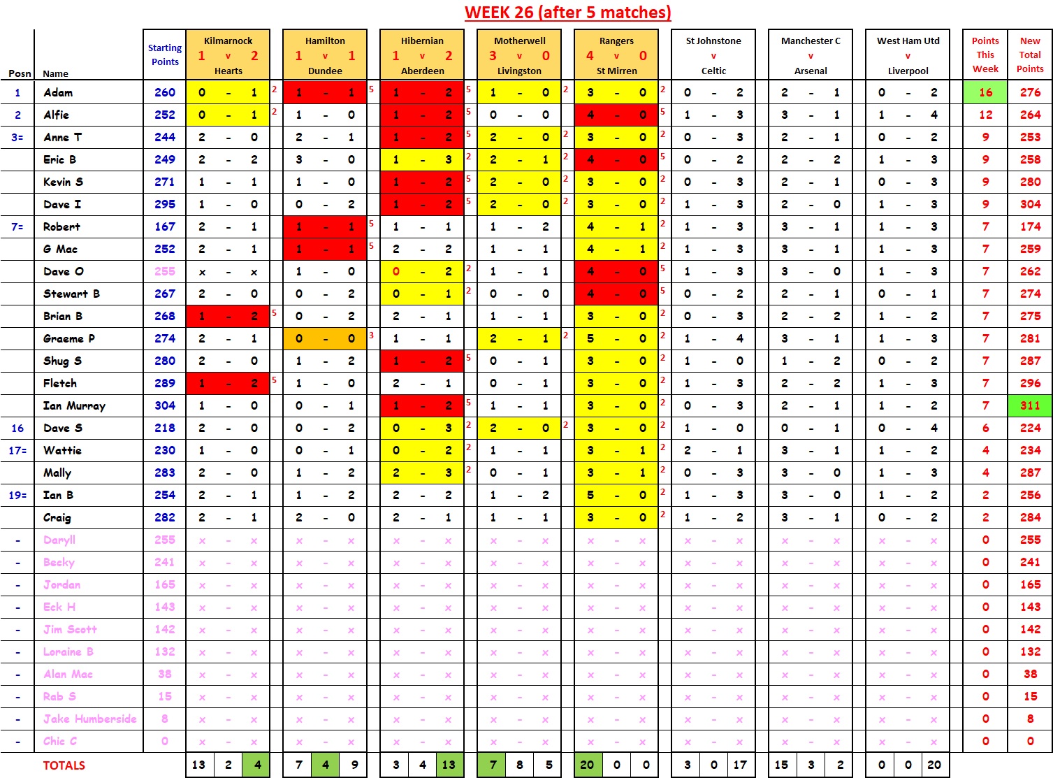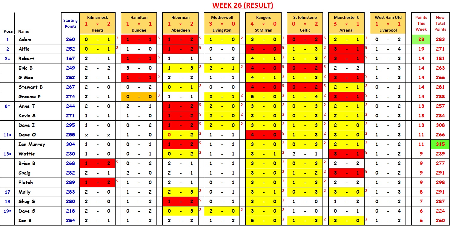 Mally wins with 21 points; David I cuts Ian Murray’s lead down to 2 points